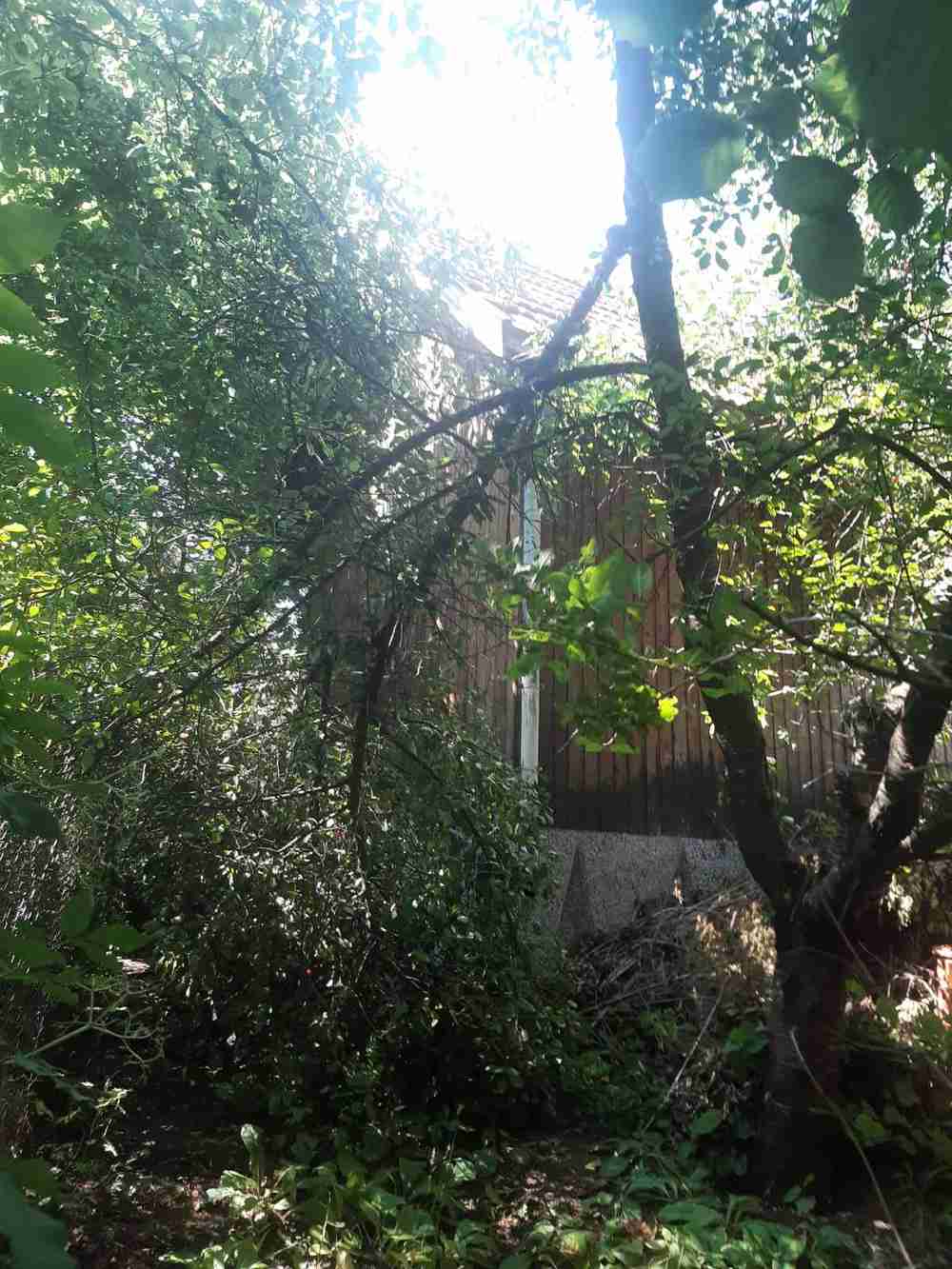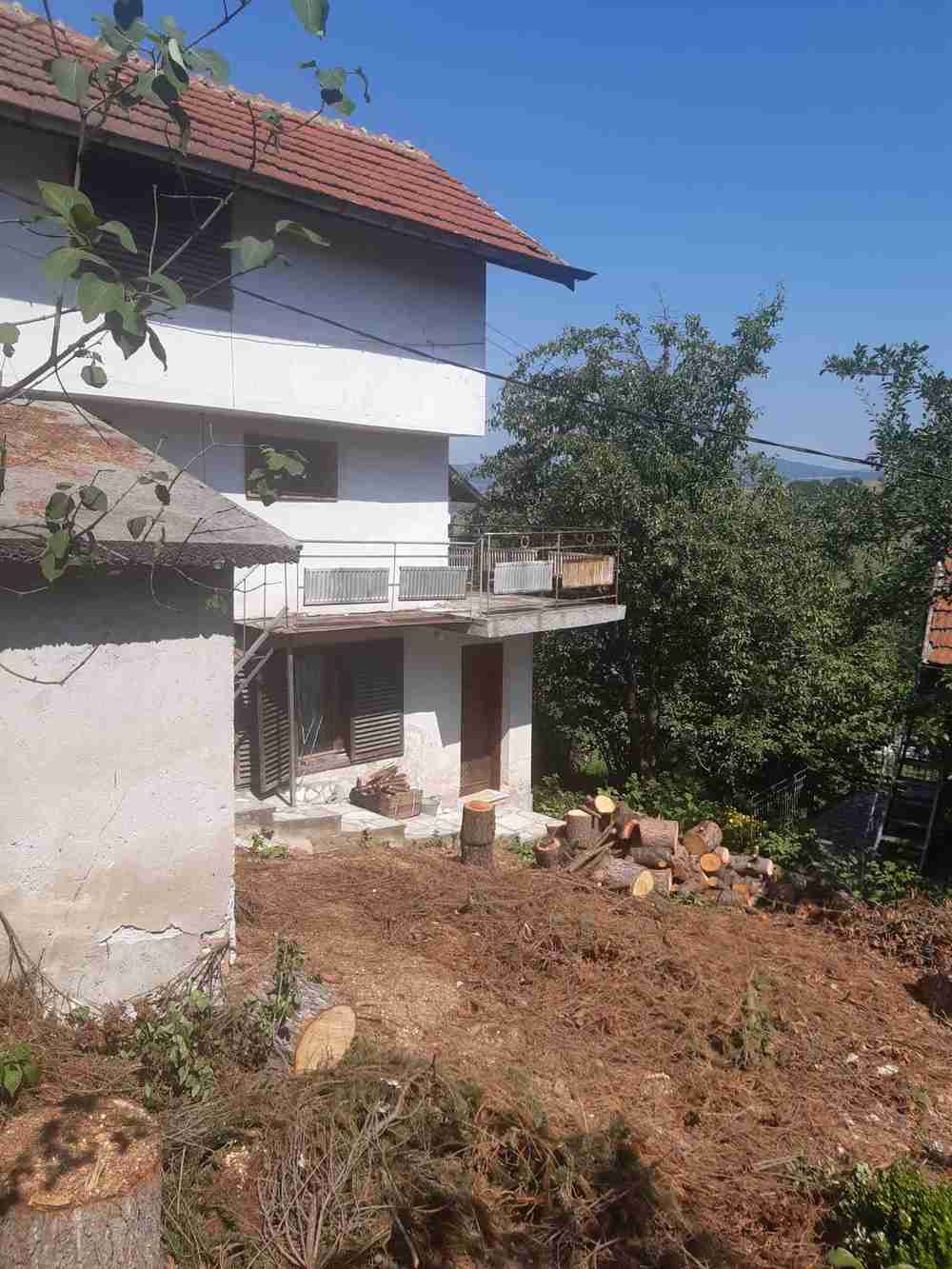 Описание: 17 км от изхода на гр. София. Имотът, който предлагаме на Вашето внимание представлява дворно място с площ от 390 кв.м. - УПИ - 1/2 идеална част, оградено, с лице около 18 метра на улица, денивелирано, в което са построени: 1) Масивна вилна сграда (тухла/плоча) на сутерен, етаж и тавански полуетаж, която е със следното разпределение --> Сутерен: гараж и мазе; I-ви етаж: коридор и 2 стаи, едната е с бокс; Тавански полуетаж, състоящ се от мансардна стая с тераса и 2) Малкa дървена къщичка, на два етажа, с външни стълби, състояща се от по 1 стая на етаж. Ток и вода от централен водопровод са налични, хубава панорама.